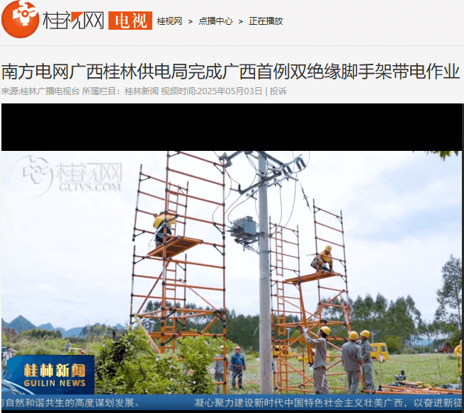 广西项目部“首例双绝缘脚手架带电作业”项目获官方媒体报道
