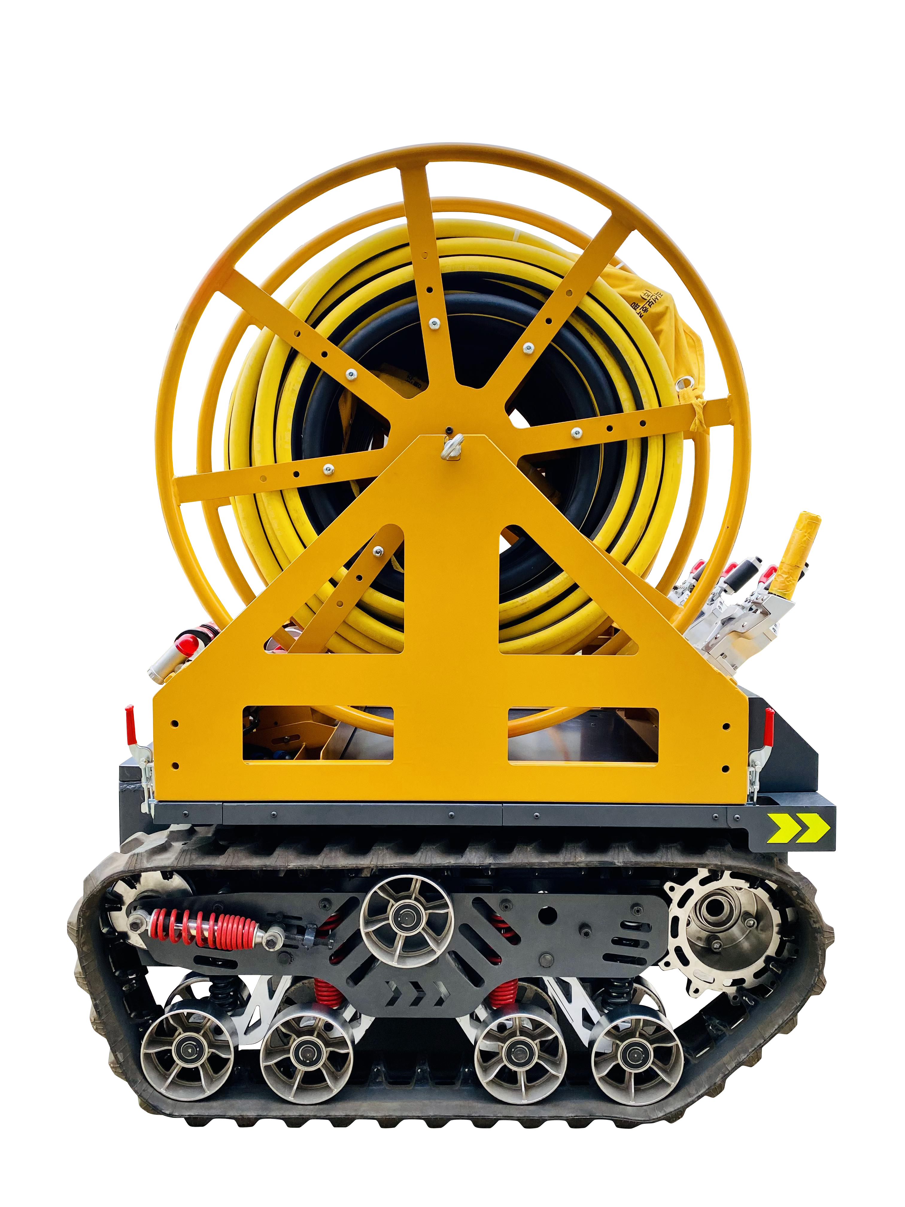 里得牌高负重履带式自行走机器人适用于户外复杂的工作环境,通过独立悬挂,能够无障碍穿越于田地山路,攀爬斜坡。 产品同时支持快速二次研发,可通过加装不同的上部负载,组成不同类型车,是带电作业优越的移动平台。